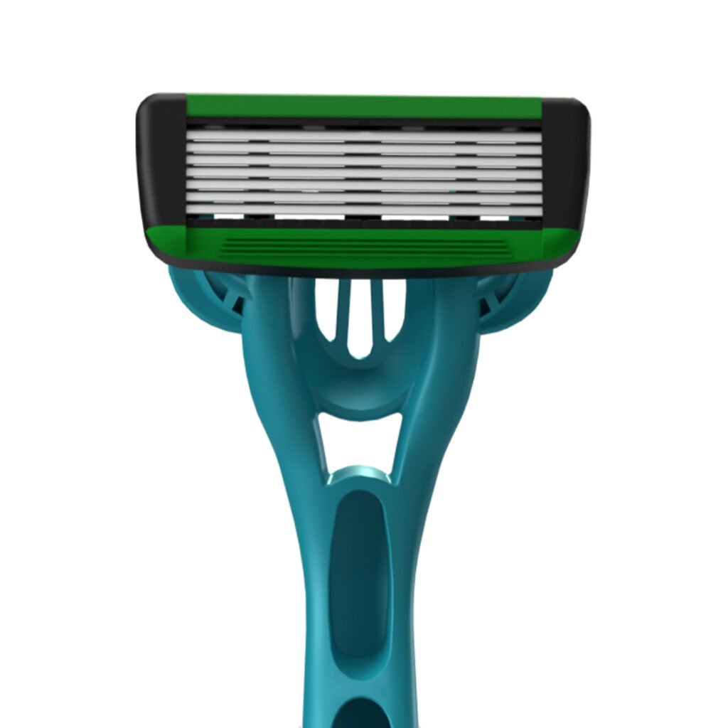 la tira verde en la parte superior de la cuchilla de afeitar para piel sensible se lubrica con agua, ayudando a que la hoja se deslice fácilmente sobre la piel mientras hidrata la piel para reducir eficazmente la irritación de la piel